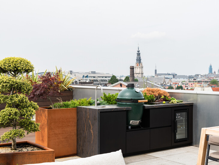 Als experts op het gebied van buitenleven en buiten koken zien wij veel situaties en dus ook veel, mooie dakterrassen. Vaak met een subliem uitzicht en ruim opgezet. We horen dan ook de verhalen van de gebruikers. Over het genieten in de zon maar ook over de nadelen van het dakterras. Veelgehoord hierbij is dat een dakterras altijd ver van de voorzieningen in de woning ligt. Voor een verfrissend drankje of een lekkere snack is het al vaak ver lopen. Een barrière om echt van het dakterras te genieten.