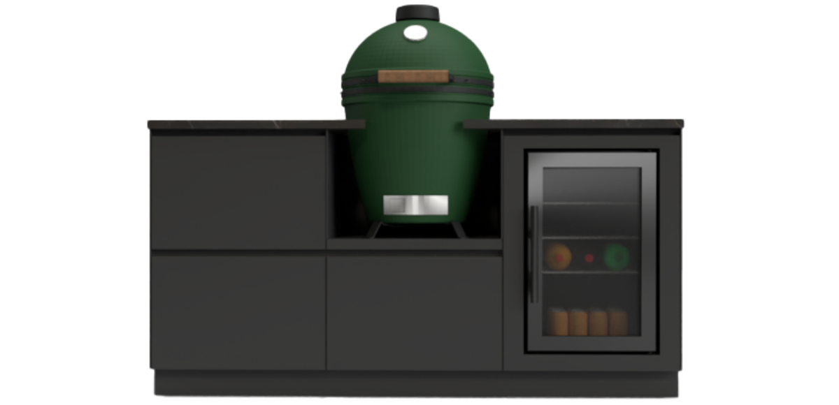 Bent u een liefhebber van de barbecue maar mist u vaak opbergruimte voor uw spullen? Of heeft u een compacte tuin en wilt u toch heerlijk buiten kunnen koken? Dan is dit ontwerp voor u. Deze keuken is slechts 1,80m breed maar hij geeft u veel werkoppervlak en opbergruimte. In de grote lades en de kastjes kunt u een ruime collectie aan bestek, servies en andere spullen kwijt.