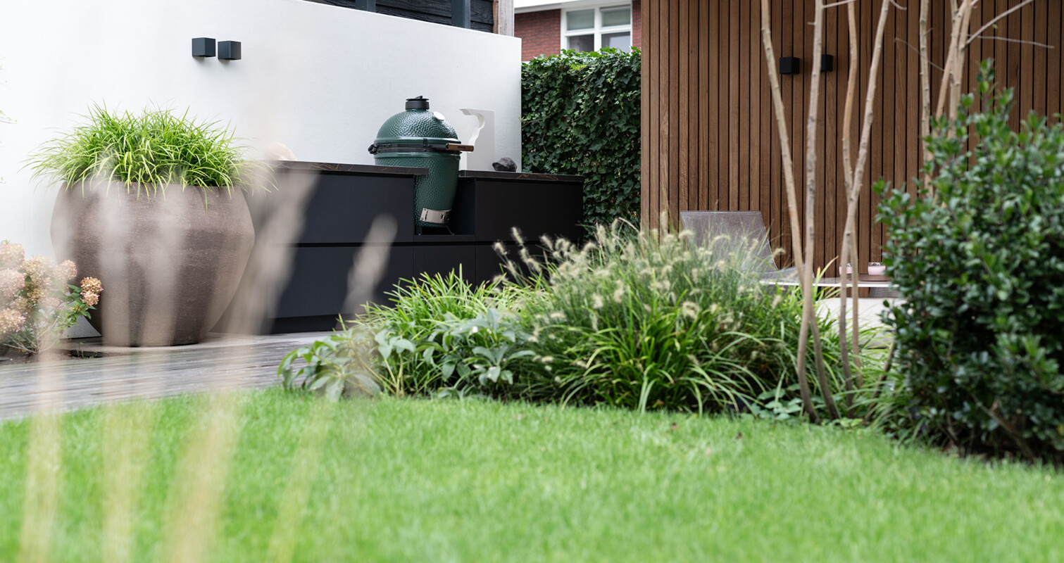 De bewoners van deze sfeervolle woning lieten een tuin ontwerpen door tuinarchitect Erik Knops. Een eigentijdse, moderne tuin die meebeweegt met het jonge gezin. Als hart van het tuinontwerp werd gekozen voor een exclusieve COOXS buitenkeuken. De buitenkeuken is gemaakt uit duurzaam, gepoedercoat aluminium met een robuust Dekton werkblad. Deze onderhoudsvrije materialen, gecombineerd met het tijdloze ontwerp, zorgen voor een buitenkeuken die geschikt is om jarenlang van te genieten.
