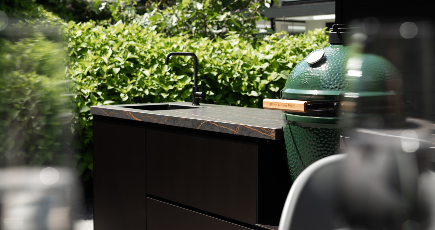 In het hart van Het Gooi realiseerde COOXS deze exclusieve buitenkeuken vol luxe apparatuur en met comfortabele bar. De omgeving van het terras speelde een belangrijke rol bij het ontwerpen van deze exceptionele buitenkeuken. Zo is in de materiaalkeuze gekozen voor een mooie aansluiting op de architectuur van de woning en is de opstelling van de buitenkeuken in balans met het terras. Centraal in de keuken is een Big Green Egg Large geplaatst die wordt geflankeerd door de Indu+ inductie kookplaat en de spoelbak met kraan. Dankzij deze exclusieve apparatuur is de buitenkeuken niet alleen een lust voor het oog maar geeft deze ook de optimale gebruikservaring.