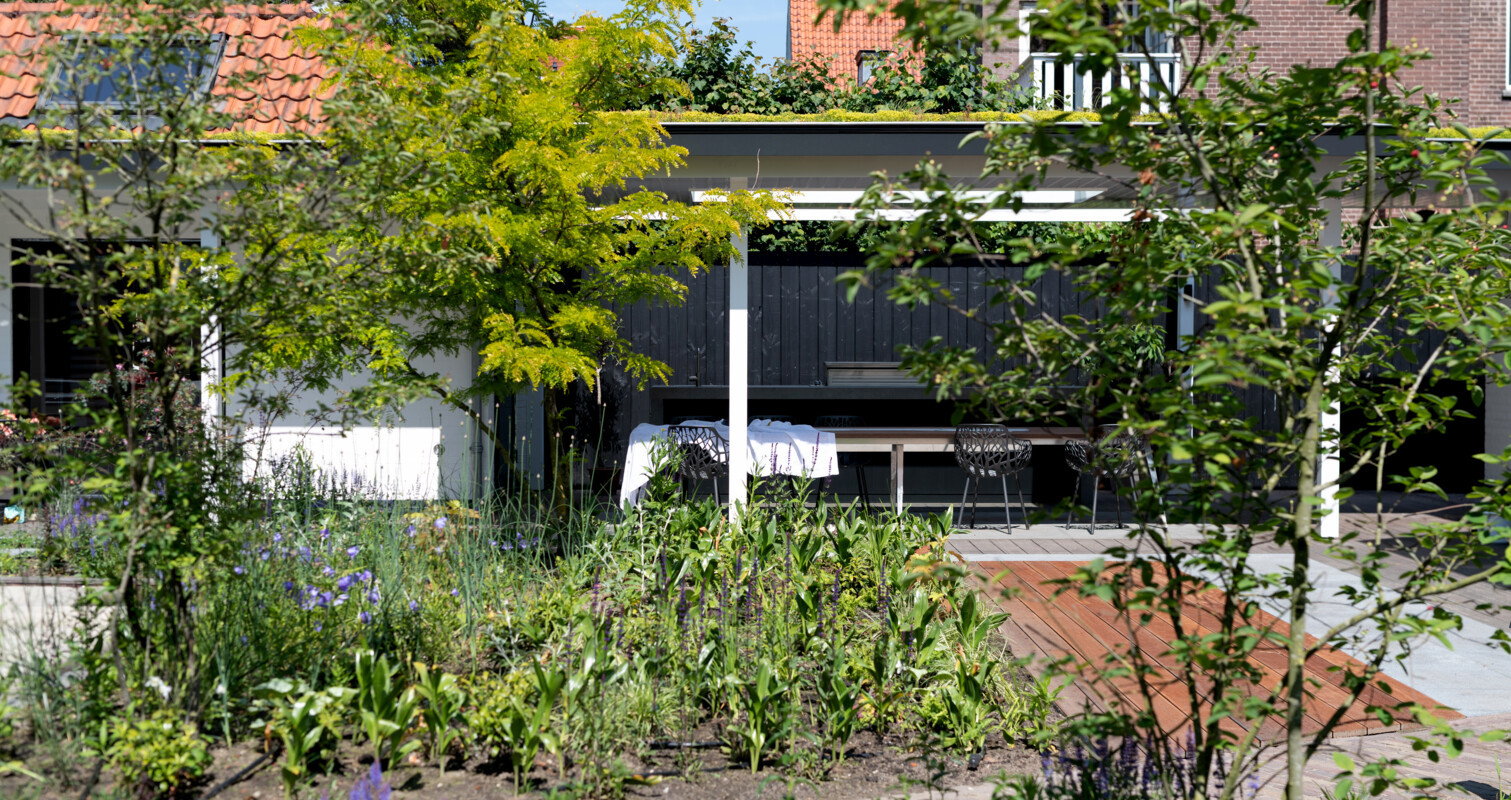 Bij de renovatie van deze karakteristieke woning in Den Haag werd tegelijkertijd de tuin gerenoveerd door Wencop Hoveniers. Als centraal punt in de tuin was de wens van de klant om een exclusieve buitenkeuken te plaatsen. Samen met de klant ontwierpen wij een robuuste buitenkeuken waarin alle wensen voor het buiten koken geïntegreerd zijn en die tegelijkertijd goed past bij het natuurlijke tuinontwerp. Er is gekozen voor een hoogwaardige gasbarbecue van Beefeater in combinatie met een Indu+ inductie kookplaat, spoelbak met kraan en outdoor-koelkast. Deze luxe apparatuur maken van de buitenkeuken dé plek om de hele zomer van het buitenleven te genieten.