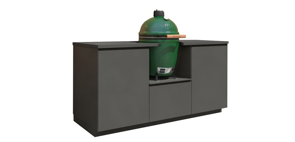 Are you a barbecue enthusiast but often miss storage space for your belongings? Or do you have a compact garden and still want to cook deliciously outside? Then this design is for you. This kitchen is only 1.80m wide, but it gives you a lot of work surface and storage space. In the large drawers and the cupboards you can store a wide collection of cutlery, crockery, and other items.